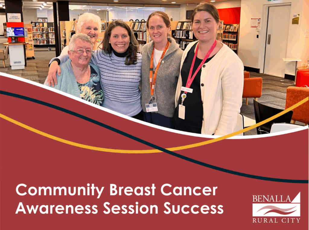 Community members gathered at the Sir Edward ‘Weary’ Dunlop Learning Centre (Benalla Library) on Tuesday 19 August, for a Community Breast Cancer Awareness Session hosted by Benalla Rural City Council.