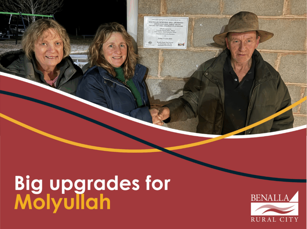 Benalla Rural City Council and the Molyullah Recreation Reserve and Public Hall Committee celebrated the completion of four significant community upgrades, officially opened by Mayor Cr Bernie Hearn on Friday 13 June at the Molyullah Hall.