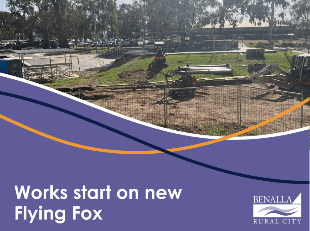 Following the installation of the flying fox, Council will begin work on a new pump track, supporting infrastructure, and a network of accessible paths throughout the precinct. These upgrades form part of a $1 million grant from Sport and Recreation Victoria, secured through Council’s master planning and grant advocacy efforts to deliver inclusive, high-quality recreational spaces for the Benalla Rural City community.