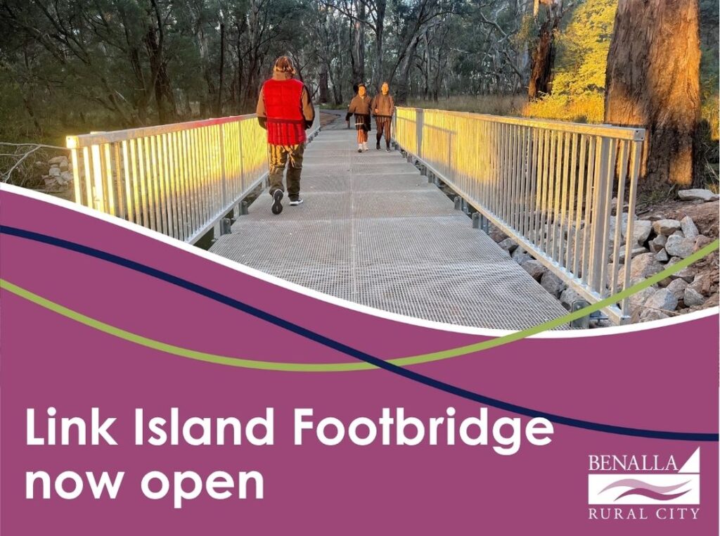 Benalla Rural City Council is pleased to announce the reopening of the Link Island Footbridge, which is now fully repaired and ready for use by the community.